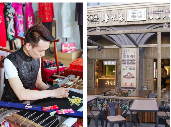 景区内设有非物质文化遗产传习基地、戴记鲁绣旗袍、鲁味斋、二安文化园等非遗展示店铺,集中展示了济南市技、趣、鲜、医、艺等诸多方面的人文历史,是槐荫区非遗文化的地标性景区。
