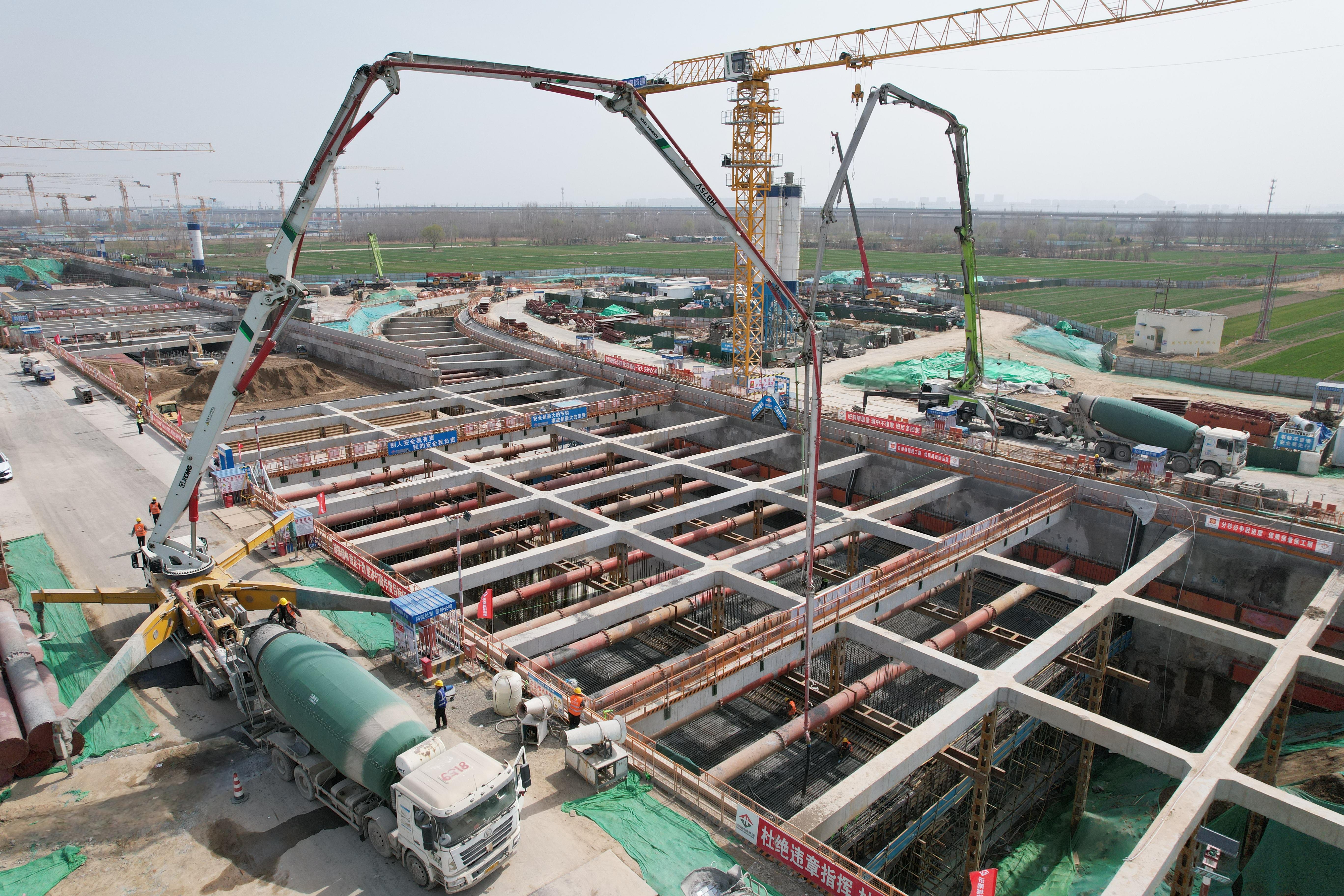 近日,建设集团黄河大道二期二标项目现场,40余台工程车辆穿梭如织,近400名建设者全力奋战,全力冲刺黄河大道二期二标展屏路节点主体工程建设。