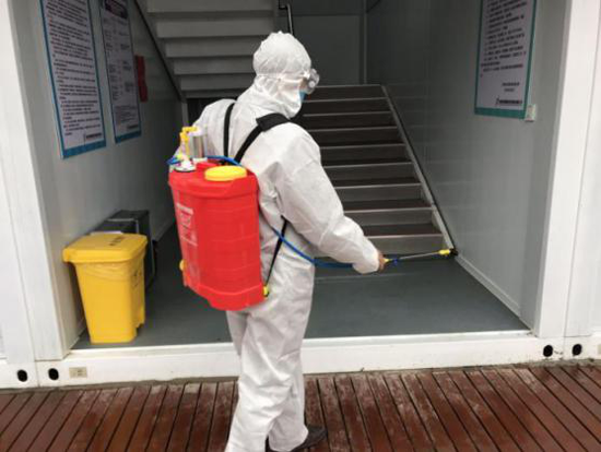 本次演练共分为入园人员、车辆及物品的消杀防疫措施以及园区内长者出现非正常发热症状的应急处置措施两部分,集中演练了员工和外来人员进入园区的引导和消毒登记,以及对面对园区疫情如何进行控制、对长者如何进行安抚送医等全套应对流程。