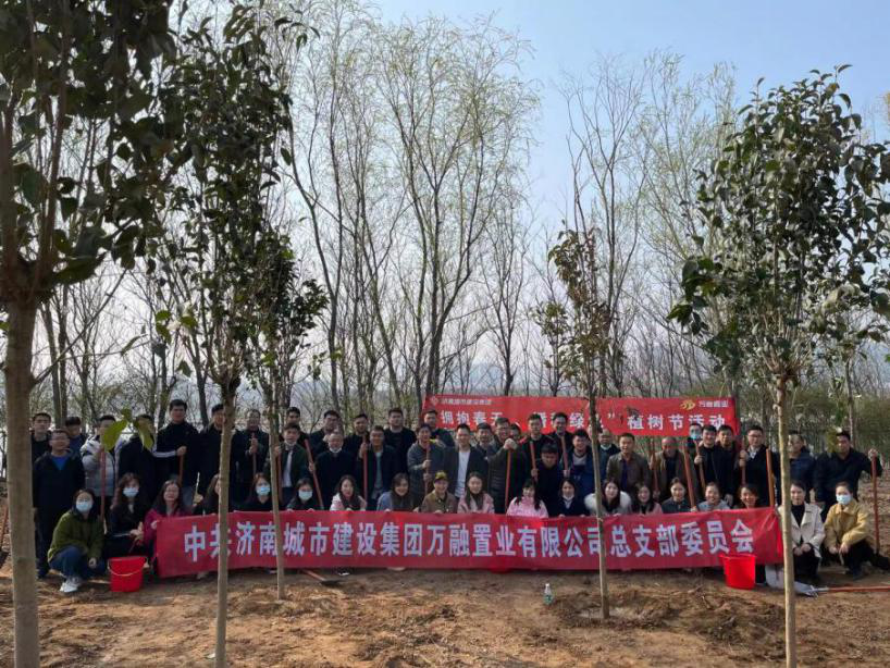 万融置业有限公司工会组织了主题为“拥抱春天,播种绿色”植树活动。召大家强化植树护林意识,切实履行公民植树义务,为祖国的绿化事业尽一份力量。济南城市建设集团万融置业有限公司副总经理、工会主席王鹏、董事会办公室王金新主任,森泰园林总经理李建峰参加了此次活动。