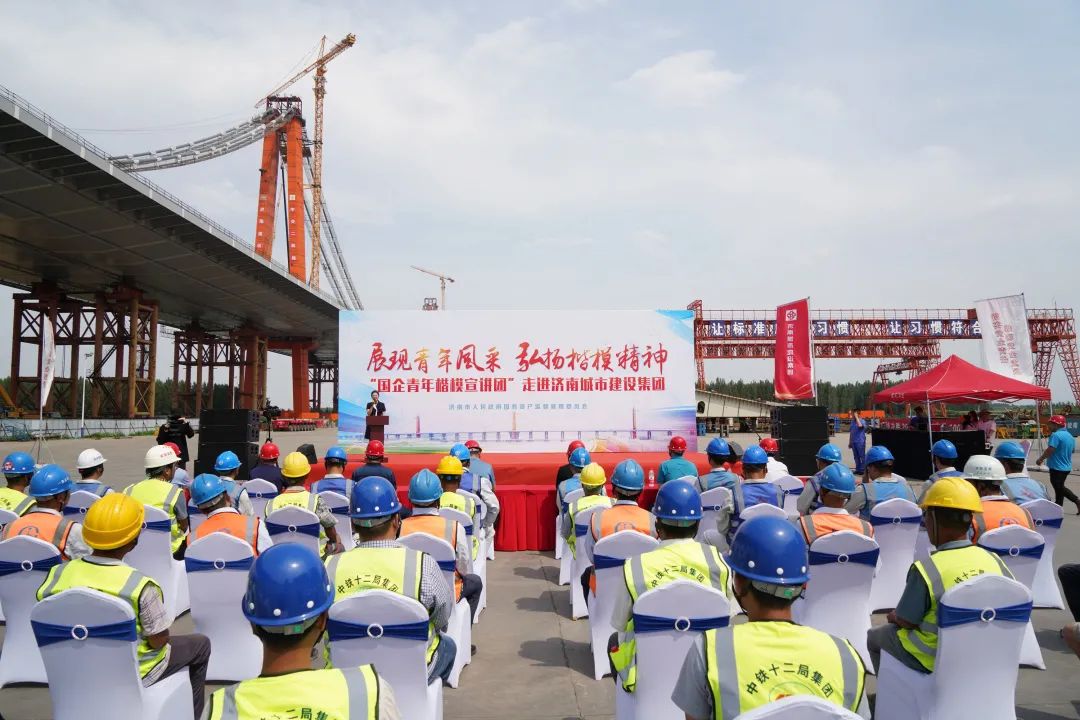 6月7日下午,济南市“国企青年楷模宣讲团”第二期宣讲走进济南城市建设集团,在凤凰黄河大桥施工现场开展青年先锋楷模事迹分享会。济南市国资委党委委员、副主任周蒨,市委党史学习教育第十四巡回指导组副组长殷军、组员马俊海,济南城市建设集团副总经理许为民,市国资委、建设集团相关处室负责人及一线职工代表50余人共同聆听。